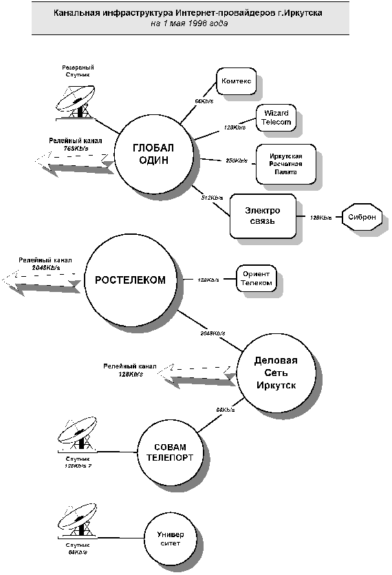 Для иллюстрации мы приводим схему канальной инфраструктуры провайдеров Иркутска, данные для которой получены нами из компетентных источников. Как говорится - "информация к размышлению"...