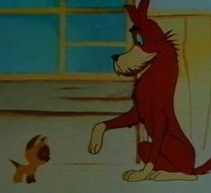 Все вы, конечно, помните мультфильм с главным героем - любопытным котенком по имени Гав, которому все окружающие сулили крупные неприятности («troubles») из-за его имени… Теперь представьте себе котенка Гава и других персонажей мультфильма, говорящих по-английски, и даже поющих по-английски свои песенки, причем перевод сделан довольно близко к оригиналу, поэтому примененный в видеокурсе метод обучения, основанный на аналогии, работает просто отлично. Каждый урок представляет собой демонстрацию фрагмента мультфильма, причем особым способом: трехминутный фрагмент мультфильма делится на отрезки по 2-3 реплики персонажей, и каждый отрезок показывается с сопровождением на русском, а потом тот же отрезок - на английском языке. После показа всего фрагмента мультфильма все реплики из него - на русском и английском - с самого начала воспроизводятся Учителем - миловидной женщиной с приятным голосом, и ее помощником - почему-то хмурым парнем. Учитель заостряет внимание на отдельные ключевые слова, которые обязательно надо запомнить по ходу этого урока. В результате ребенок постигает азы английского языка: выучивает некоторые «основные» слова языка, знакомится с построением живых фраз на английском, учится применять основные обороты. Наверное, ошибкой бы было садить ребенка перед монитором (или телевизором), запускать данный видеокурс и оставлять его одного. Необходимо быть рядом, чтобы в случае необходимости подсказать слово или ответить на вопросы, которые обязательно будут у заинтересованного ребенка. То есть использование курса все-таки предполагает общение, но не с компьютером, а с человеком, который находится рядом и готов помочь освоить материал урока. В итоге как бы закладывается фундамент языковой грамотности ребенка, при наличии которого уже можно учить общению с компьютером, и потом оставлять ребенка наедине с привычными интерактивными обучающими программами.
