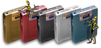 Ну, а теперь подробнее. Размеры - 70x91x16,5 мм (ширина, высота, толщина), вес - 65 г (без батареек); память - 32 Мб, расширяемо - до 64 Мб. Цена с 32 Мб - $299, с 64 Мб - $499. Питание - 2 аккумулятора на 1,2 В. Ну, и разные там сопутствующие прибамбасы, само-собой. Диапазон воспроизводимых частот - от 20 Гц до 20 кГц, отношение сигнал/шум - 70 дБ.