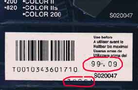 нанесение срока службы и номера партии на нижней стороне упаковки картриджа типографским способом, тогда как на оригинальных картриджах эти данные впечатываются отдельно на печатающем устройстве. |