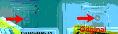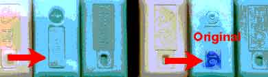 Основной отличительной особенностью неоригинальных картриджей является то, что номер серии и срок годности картриджа напечатан типографским способом. На оригинальных картриджах EPSON эти данные впечатываются отдельно на печатающем устройстве. Образцы нижней части оригинального и поддельного
