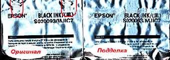В последнее время в продаже на московском рынке и, возможно, уже в других регионах России появились поддельные чернильные картриджи к струйным принтерам EPSON Stylus (S020108, S020093, S02089). Упаковка этих поддельных картриджей полностью копирует все товарные знаки оригинальных чернильных картриджей. Несмотря на это общее внешнее сходство ничего общего с оригинальной продукцией EPSON они не имеют. Внутреннее же наполнение, т.е. чернила дадут Вам не только безобразное качество, но и могут явиться причиной выхода из строя пьезоэлектрической печатающей головки. Это доставит Вам не только неприятности от этого факта, но и отнимет у Вас время на доставку принтера в технический центр, его ремонт и т.д.