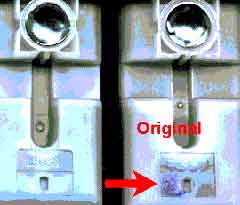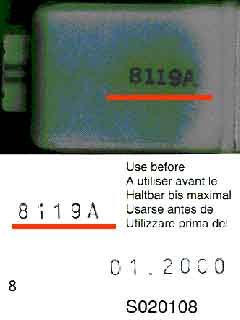 2. Особое внимание следует уделять картриджам серии 7925А, срок годности до 99.12. Вскрыв картонную упаковку Вы можете проверить номер, нанесенный на сам картридж, не вскрывая вакуумную упаковку. Во всех выявленных случаях картридж имел номер 7904Е. В оригинальных картриджах номер партии, указанный на коробке, соответствует номеру партии, выдавленному на левой боковой стороне картриджа. |