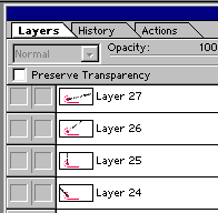 но у каждого слоя изменяется Opacity (прозрачность), и с такими градациями,