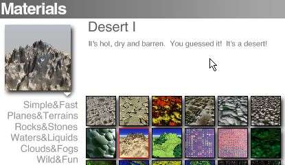 Итак, Bryce4, генератор ландшафтов на воксельном движке (очень здорово для создания гор). Отличия от демо версии и ранних в наличие разнообразных библиотек материалов, которые и составляют основную ценность. Более того, замороченный редактор текстур просто вводит в ступор - чувствуешь, что сидишь за рычагами крутейшего танка - а толком выжать всю мощь не получается :)