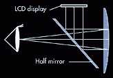 Мысль уменьшить и улучшить устройства визуального восприятия информации побуждает большое количество компаний создавать разнообразнейшие устройства - от огромных дисплеев до микроочков (например, компания microoptics - я описывал их продукт в прошлом номере). Известная компания OLYMPUS пошла по пути изготовления особой формы линзы, и в обход применения полупрозрачного зеркала. А это уменьшает оптические потери.