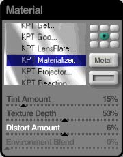 на рабочем поле KPT Materializer'a (и во всвех других, впрочем, тоже) есть кнопка предустановок (presets). Там можно выбрать уже готовый шаблон для накладывания икажений.