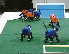 писавших поведенческие программы для самих игроков. Тот робот с мячом, показанный на рисунке - не единственный тип. По полю могут бегать и настоящие "собачки" (типа AIBO). Вот такие: