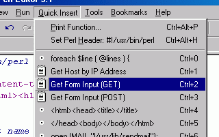 Для любителей языка Perl есть очень неплохой и функциональный редактор, который может сильно облегчить написание и отладку программ. На данный момент на оригинальном сайте программы доступна версия 3.1 (18.08.00) [можно скачать и у меня - 800kb]
