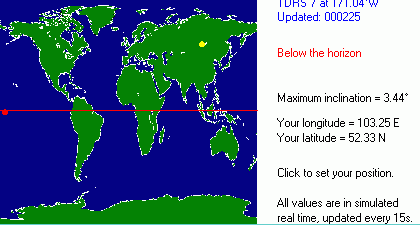 Сервер Lyngemark satellite chart - очень крупный сборник ссылок и справочной информации по спутниковым системам и самим спутникам - где какой находится в данное время, как называется, что обслуживает, список каналов и сервисов и т.п. Вот один из примеров, как выглядит симуляция движения по проекции орбиты на Землю.