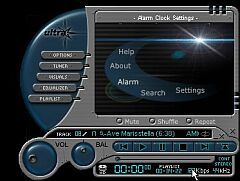 Хочу обратить внимание на функцию Alarm - можно установить время, когда запуститься и проиграть что-либо (мда, кто б еще утром мне комп включил? :) А мне второй скин понравился: