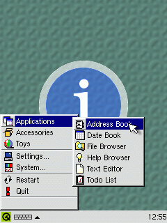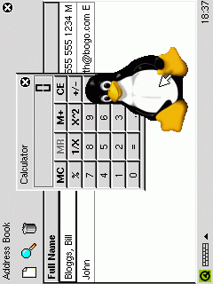 Компания Trolltech представляет для свободного пользования демо-версию альтернативной операционной системы "The Qt Palmtop Environment", которая для любого PC умещается всего на одной дискете 3.5". Ядром является Linux, сверху - собственная графическая оболочка. Выглядит это примерно так: