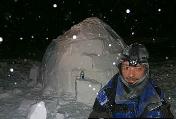Вот по этому адресу несколько человек, используя то, что снег в северной Гренландии достаточно плотный для использования его в качестве строительного материала, решили повторить постройку снежного дома - т.е. иглу, как это делают аборигены - местные эскимосы.