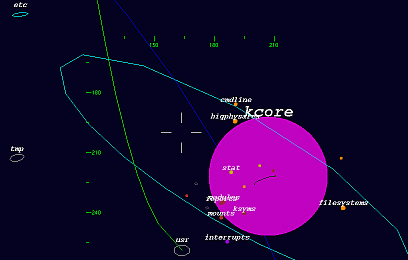 :) Значит так: я сильно подозреваю, что на идую его натолкнуло слово filespace - т.е. файловое пространство. Space имеет еще одно значение - космос. Вот и полетели - от планеты к звезде, галактике и т.д. Управляем мышкой, галактики - директории, планеты - файлы, размеры планет отображают размер файлов. Конечно, такой метод браузинга по файловой системе далеко не самый удобный, скорее, эта программа отражает только идею (или мечту) разработчика о трехмерном представлении работы с системой.