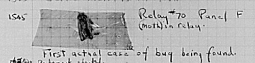 Первый компьютерный баг. Мотылек, который вклеен в рабочий журнал в 1951 году, когда Грейс Хоппер работала на электромеханическом вычислителе Mark I, который занимал площадь 30кв.м и делал 3 операции сложения в секунду (память составляла 72 слова). Использовался этот суперкомпьютер у военных. |
