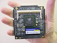 На сайте разработчиков написано, что потребление при частоте 128МГц составляет всего 0.5Вт. В общем, почти как у Crusoe TM3120, у которого на частоте 333-400Мгц (плавающая) потребление составляет от 1 до 2Вт. Failsafe BootRom и малое потребление явно указывает на область применения этого чипа - малогабаритные системы для управления сетевым хозяйством, для управления оконечными устройствами (роботы), да тот же PDA, в конце концов. Так что, комп, умещающийся в клавиатуре - не так уж и нереально собрать самому. Что это - еще одна эра "робиков" на коленке? Кстати, забыл про стоимость - все это богатство "в-одном-чипе" стоит $50. OEM конечно, но зато вместе с операционной системой Линукс. Выглядеть комп может вполне малогабаритно. Вот так, например: