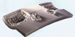Данное устройство - потенциально наиболее биологически подходящая кавиатура из всех доступных на рынке на сегодняшний день. Ну, в самом деле, почему мы пользуемся таким большим набором клавиш (больше сотни)? Причем, в данную клавиатуру встроена и своя "мышь" (даже две) - и это без отрыва от клавиш. Как можете заметить, для печати используются четыре пальца каждой руки и имеется по 5 кнопок для каждого пальца. Разумеется, для работы на такой клавиатуре нужно к ней сильно привыкнуть, но печатать можно очень быстро и не уставая. Стоит дорого - более $1500. Но это пока все же, остается некоторым, я бы сказал, изыском, что ли... Есть и "попроще" - в классически модном "разломанном" стиле: