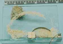 На рисунке показан в виде пластинки, которая очищает стекло от опилок. Кстати, в качестве очистителя объективов видеокамер от пыли и предполагается использовать это нововведение. Разумеется, все это прикладывается к космосу - там нужно как можно меньше механически движущихся частей - надежность от этого повыщается стократ.