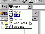 В выпадающем меню слева можно найти пункты "Music, Movie, Software, Web pages, Web site" - музыку Ohaha ищет по протоколу напстера, фильмы - по своему собственному - в Ohaha можно точно так же шарить ресурсы, как в напстере или Gnutella. Кстати, протокол последней тоже используется в поисковой машине Ohaha.
