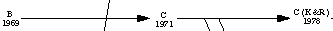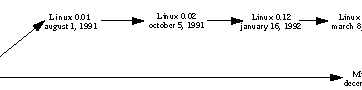 Как видно из схемы, Linux появился в 1991 году, выделившись из Minix-a (не без усилий Торвальдса, разумеется). С историей развития операционных систем (история виндузы там тоже есть) тесно связана история развития языков программирования. C родился из B в 1971 году, а 1978 получил окончательную интерпретацию от Кернигана и Ритчи, которая сохраняется и до сих пор. C достаточно близок к B, например нотация *(D+i), инкременты и декременты (++ и --) - все из B. Кстати, B использовался на DEC-овских машинах PDP-7 и PDP-11, система команд которых перекочевала в отечественные ДВК. С тех пор система команд с фиксированной длиной называется DEC-овской. Между прочим, лично по моему мнению - это лучшее решение, которое почему-то застремали из-за "неоптимальности размера получающейся программы". В общем, почитайте Ритчи. Весьма интересно. |