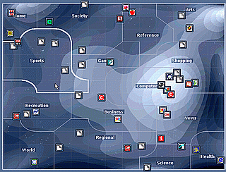 Вот такая карта является интерактивной - разбита на основные разделы - Спорт, Искусство, Компьютеры, Новости и т.д. В каждый раздел можно углубиться (zoom in) - там появятся подразделы - например, в "искусствах" - музыка, развлечения, история, образование и др. И так далее по глубине. Итераций в некоторых разделах очень много.