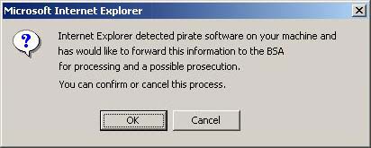 Как видите, IE честно оставляет выбор - можно нажать и "ОК". Хотя ситуация настолько комична, что смахивает на фейк. (я немного поджал картинку, в оригинале строчки были развернутые) картинку прислал Konstantin |