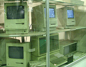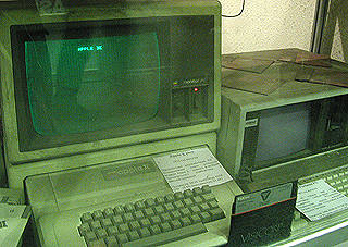 А это TANDY - прадедушка современных переносных компов (ноутбуков, то бишь). Уже не помню точно год выпуска, но что-то около начала 90-х. Там еще ДВК есть, есть разнообрызные более поздние Apple, еще какое-то там старье... вообще поглядеть интересно, вне всякого сомнения. Да, этот музей я видел на торговой барахолке на Савеловском рынке. Хотя сама барахолка так себе, честно говоря. Цены меня не вдохновили. Да и хайтека немного совсем.