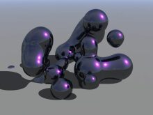 Как видите, добавились некоторые инструменты, которые в Bryce обычно представляются этакими целыми "лабораториями" (типа SkyLab, Material Lab и пр.). Пиктограмма с деревом - это понятно TreeLab (т.е. листочки, веточки и целиком деревья - все чистое 3D, разумеется). А вот новая пиктограмма в виде сложной молекулы - это т.н. MetaBall blobs - позволяет создавать объекты со сложной формой больше приближенной к органическим формам вещества. Примерно такие: