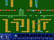 В данной реализации от есть своя фишка - раунд (уровень) просто очень длинный и постоянно опускается вниз - при этом, неразбитые кирпичи - если остались - ну и фиг с ними, уходят вниз. Таким образом, в принципе, можно пройти весь уровень, не разбив ни одного кирпича (на практике, конечно не так). Правда, чем меньше кирпичиков разбиваешь, тем меньше получаешь очков и еще надо хватать выпадающие пирамидки - на них покупаются товары в магазине после каждого уровня. В общем, балансировка товаров и цен кое где хромает, но в целом, очень неплохо все придумано. Скачать демо-версию (органичение на уровни и невозможность записываться)