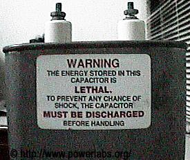 Надпись гласит: "Энергия, хранящаяся в этом конденсаторе - смертельна.