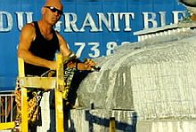 Т.е. натурально плавающая каменная лохань из гранита (!). Высота, разумеется, не маленькая, вес все таки у лодки большой, стенки ведь тонкими не сделаешь, но зато - ни у кого такой нет!. Основной кораблестроитель - Жан-Ив Менэ (Франция). На сайте, где рассказывается об этой лодке, выложено около 300 фоток, которые последовательно, шаг за шагом рассказывают (показывают) как из начальной гранитной глыбы получилось сие плавсредство.