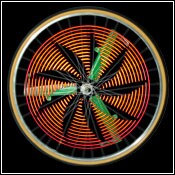 Эти накладки вставляются в колеса (между спиц наверное) по три штуки, и можно устанавливать определенный рисунок зажигания светодиодов. Конечно, чем больше накладок (шесть например), тем четче рисунок. Даже текст можно сделать:
