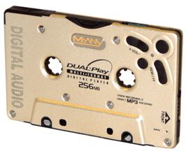 Форма оправдывает ожидания - эту "кассетку" можно воткнуть в обычный кассетный магнитофон и слушать музыку. Ну, нет магнитофона - тогда просто так послушать можно :) Благо, 256 Мб хватит на 4 часа. Спецификация обычная: 1.2В никель-металл аккумулятор, слот для MMC, слот для USB, размеры 6.3 x 10 х 1.2 см, линейный выход, встроенный диктофон, понимает MP3,WMA, может записывать звук (с высоким битрейтом!).