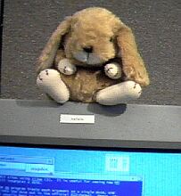 Итак, что же этакого в зайчике, поднявшем ушки? Дело в том, что ушки он поднимает, когда кто-то определенного круга лиц находится в он-лайне. Друг или знакомый. Внутри игрушки находится моторчик, немного электроники, а сам он цепляется к последовательному порту компа. А по какому поводу поднимать ушки - это уже дело десятое. Хозяйское дело-то. Made by Jennifer Smith (MIT). Основное управление на PIC. Рисунков и схем нет, но в общем-то смысл не в этом - вы посмотрите на идею! Какая идея-то! Надо ритлабовцам подсказать, чтобы в комплекте с TheBat продавали игрушечную летучую мышку, которая бы махала крыльями по приходу почты :) прислал Леха |