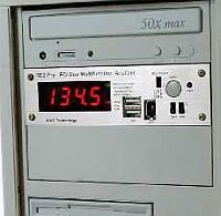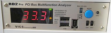 В составе: фронтальная панель, PCI карта для мониторинга частоты PCI шины, загрузки шины в процентах, скорость обмена данными по шине в реальном времени, отображение состояния хардварного 80h/84h порта для диагностики загрузки компа, несколько разъемов и переключателей.