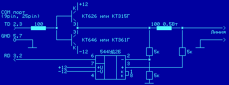 Итак, тема выделенных линий никак не отпускает. Еще с момента упоминания мной токовых усилителей для COM-портов приходило много ссылок, но вот разработка простейшего ретранслятора на сайте smashnet.chat.ru мне понравилась. Ранг - 1 км, стоимость - копеечная, тип среды - все двухпроводное вплоть до телефонной "лапши".