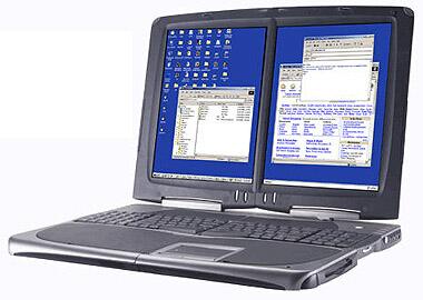 Фирма Xentex tech. назвала его FlipPad Voyager. размеры в свернутом состоянии: 35 х 25 х 7,5 см, вес - чуть более 3 кг. Не очень-то и легкий, но зато компактный. Кроме того, два ЖК экрана (каждый 13") имеют разрешение 1024 х 768, что в сумме дает 1536 х 1024. Правда, обе "страницы" получаются в повернутом виде, но, с другой стороны, кто сказал, что 768 х 1024 неудобнее чем 1024 х 768 ? :) Но основная фича это ноутбука конечно, в том, что он "разламывается" пополам, что и обуславливает общую компактность. Остальные характеристики ничем особым не оттличаются: проц AMD, память, всякая периферия, клавиатура несколько расширенная (опять таки, благодаря способности ноутбука складываться), поэтому может привлечь даже ту часть покупателей, которых отвращала небольшая клавиатура обычных ноутбуков. |