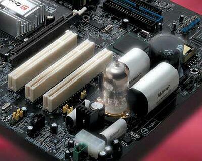 Похоже, ламповая техника обретает новую основу, хотя использоваться будет как раз в своем главном, пока ничем не побитом амплуа - усилители звука. Вот фото новой платы от AOpen: Лампа используется в предусилителе звукового тракта на борту. Производители сказали, что лампа - российская, но не сказали какая именно (двойной триод). Таким образом, плата AX4B-533 становится первой в мире материнской платой для микропроцессоров, использующей электронные элементы на основе вакуумной трубки (изобретенной еще в 19 веке), а заодно и радостью аудиофилов. ссылку прислал Andrey |