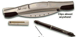 SeikoInstruments опять предлагает устройство из области ввода рукописного текста в компьютер. Верхняя деталь - это прищепка для пачки листов в блокноте. Ручка с электроникой, плюс ИК-передатчик. Конечно, все это более применимо для PDA или ноутбуков. Даже для работы в офисе или дома с обычным PC: