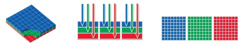 Тут нечего комментировать - и так все понятно: "мозаичная" матрица и матрица Foveon. Есть и галерея снимков, полученных с помощью новой матрицы. Что-то особенное увидеть сложно, так как они сильно уменьшены (470х470) и JPEG компрессией попорчены. ссылку прислал akul |