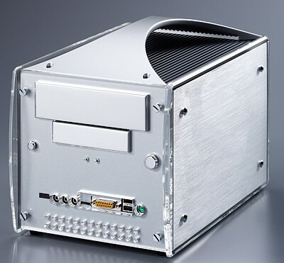 На фото - корпус a-la "PC-Cube" от китайско-тайваньской фирмы Chyang Fun. Такие размеры корпуса возможны например с материнской платой VIA P4M266 Socket 478 Flex-ATX. Внутри - P4, IEEE1394, USB, видео и аудио интегрированные. Есть два слота (PCI, AGP). На фронтальной панели есть IrDA (пара: излучение и прием)