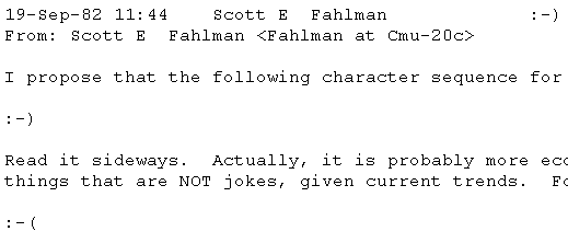Это часть письма, в котором в 1982 году Scott Fahlman впервые употребил