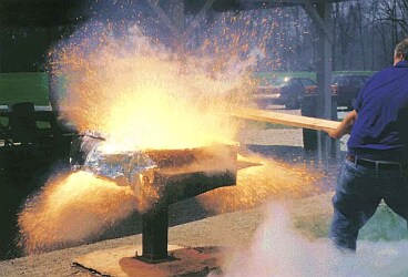 Нет, это не сталевары. Это ребята из Индианы прикалываются. Залили в старый гриль с углем (железная коробка) 3 галлона жидкого кислорода и... В общем, нравятся мне такие вещи. Люблю, чтоб красиво, с размахом! Мувики и звуки найдете на оригинальной странице Джорджа Гобла. |