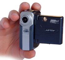 DV II Digital Camcorder пишет видео прямо на флэшку. На 512Мб (CF) пишет до 2 часов видео в формате 320x240 (10fps). Может использоваться в качестве простого цифрового фотоаппарата. В этом случае - 2Мпкс (1600х1200). Или как диктофон (4мин=1Мб). Встроенная память 16Мб SDRAM. Питание - 2 АА батарейки. Может подключаться к USB порту. Стоимость указывается около $180 , что представляется весьма заманчивым.