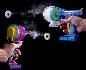 Во народ развлекается! :) На картинке - игрушка-пистолет, который пускает дымные кольца.