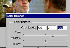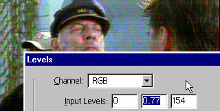 Подобного типа шумы появляются из-за несовершентсва 2-х головочных аппаратов видеозапиписи VHS, (низкий динамический диапазон канала цветности VHS), из-за некоторых особенностей декодирования сигнала и т.п. Существуют специальные фильтры, которые могут на цифровом уровне сами разобраться с шумами (стоимость "в железе" таких реал-таймовых фильтров можете себе представить). Однако, для очистки вручную подобного изображения давно применяется достаточно стандартный способ, который заключается в размывании цветовой составляющей. Как все это делается, разберем по шагам на примере первой картнки (1).