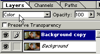 Осталось только выбрать способ наложения ("Color") верхнего слоя на нижний. Этот способ не затрагивает яркостную составляющую, но переносит цвет. Уже "размытый". Что и требовалось.