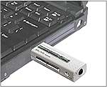 собственно, плейер и блок для батареи питания (одна ААА батарейка). Размеры плейера: 73 x 35 x 16 мм, батарейки хватает на 10-12 часов проигрывания, интерфейс с PC - USB, 64Мб памяти.