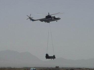 А это отечественный МИ-26, который несет поврежденного CH-47. |