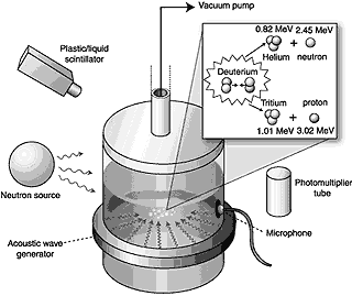 Был использован очень интересный и, похоже, не до конца изученный эффект "сонолюминесценции". Явление "сонолюминесценции" заключается в том, что при пропускании через жидкость мощной ультразвуковой волны в ней возникают кавитационные пузырьки, которые при схлапывании дают вспышку света. Происхождение света - тепловое, то есть, на короткое время в жидкости возникают сверхгорячие области с температурой в тысячи и десятки тысяч градусов. В самом грубом приближении, стандартная картина сонолюминесценции такова: в фазе разряжения ультразвуковой волны в определенном месте жидкости (в месте максимальной пучности ультразвука) создается большое по модулю отрицательное давление ("растянутая" жидкость). При превышении критического значения амплитуды волны, в фазе разряжения начинается кавитация -- разрыв сплошной жидкости с образованием полости, заполненной парами этой жидкости. Образуется и растет кавитационный пузырек. Через полпериода, в фазе сжатия, звуковая волна создает сильное положительное давление в жидкости. Оно -- вкупе с силами поверхностного натяжения -- приводит к быстрому сжатию пузырька. В процессе этого сжатия происходит нагрев паров, находящихся внутри пузырька (разумеется, для более аккуратной картины нам нужно включить ударные волны, процессы конденсации, и т.д.). Именно при таком сжатии и достигаются столь высокие температуры. Такой метод окрестили "пузырьковым термоядом", ибо для термоядерной реакции как раз выполяется одно из условий - высокая температура. Сам по себе опыт интересен, но вызывает много разногласий. Вплоть до того, что получение звездных температур (несколько млн. градусов) в этом опыте - под вопросом. Многие, в общем, сразу обрадовались и стали считать, что являются свидетелями рождения новой эры в энергетике. Потом, несколько дней назад появилась другая работа, про которую уже ошибочно раструбили BBC и xTerra, что она "закрывает" открытие... Один из читателей прислал письмо насчет этого эксперимента: Игорь Иванов: "...в общем, чтоб разъяснить ситуацию, я позавчера написал длинную популярную статью, в которой подробно рассказал как про само явление, так и про шумиху вокруг него..." прислал spark |